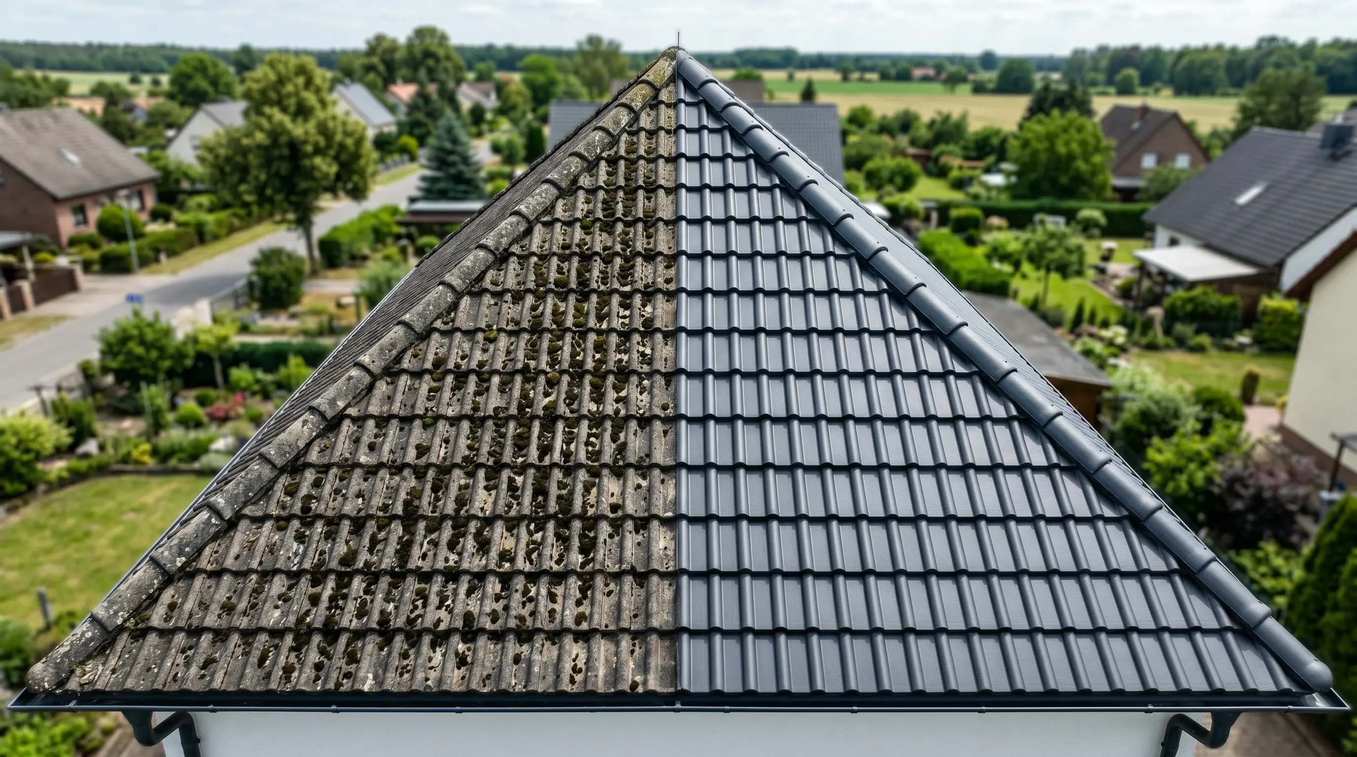 Dach zeigt Moos, Algen, Verfärbungen — aber keine Substanzschäden