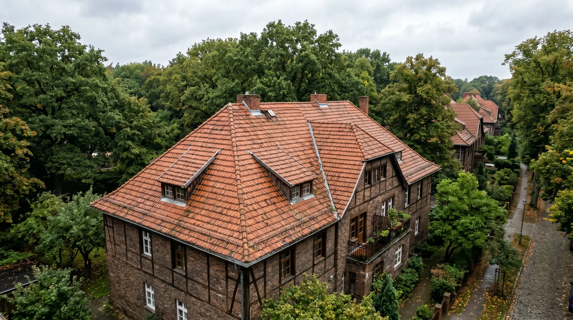 Die Siedlungshäuser in Treptow haben oft 100 Jahre auf dem Buckel — und Dächer, die es zeigen. Professionelle Beschichtung verlängert die Lebensdauer um weitere 20 Jahre.