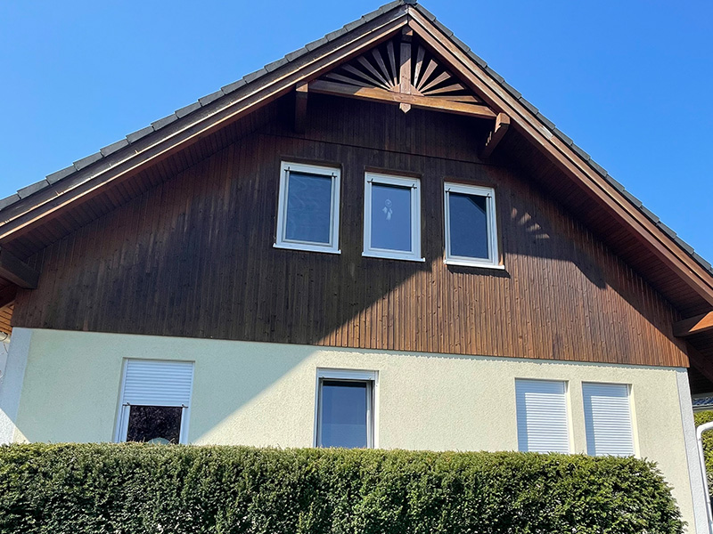 Unsere professionelle Holzschutzbehandlung reinigt das Holz zunächst gründlich, behandelt es dann mit einem speziellen Holzschutzgrund und versiegelt es mit einer hochwertigen Holzlasur oder Holzfarbe. So bleibt Ihr Holz jahrelang schön und geschützt.