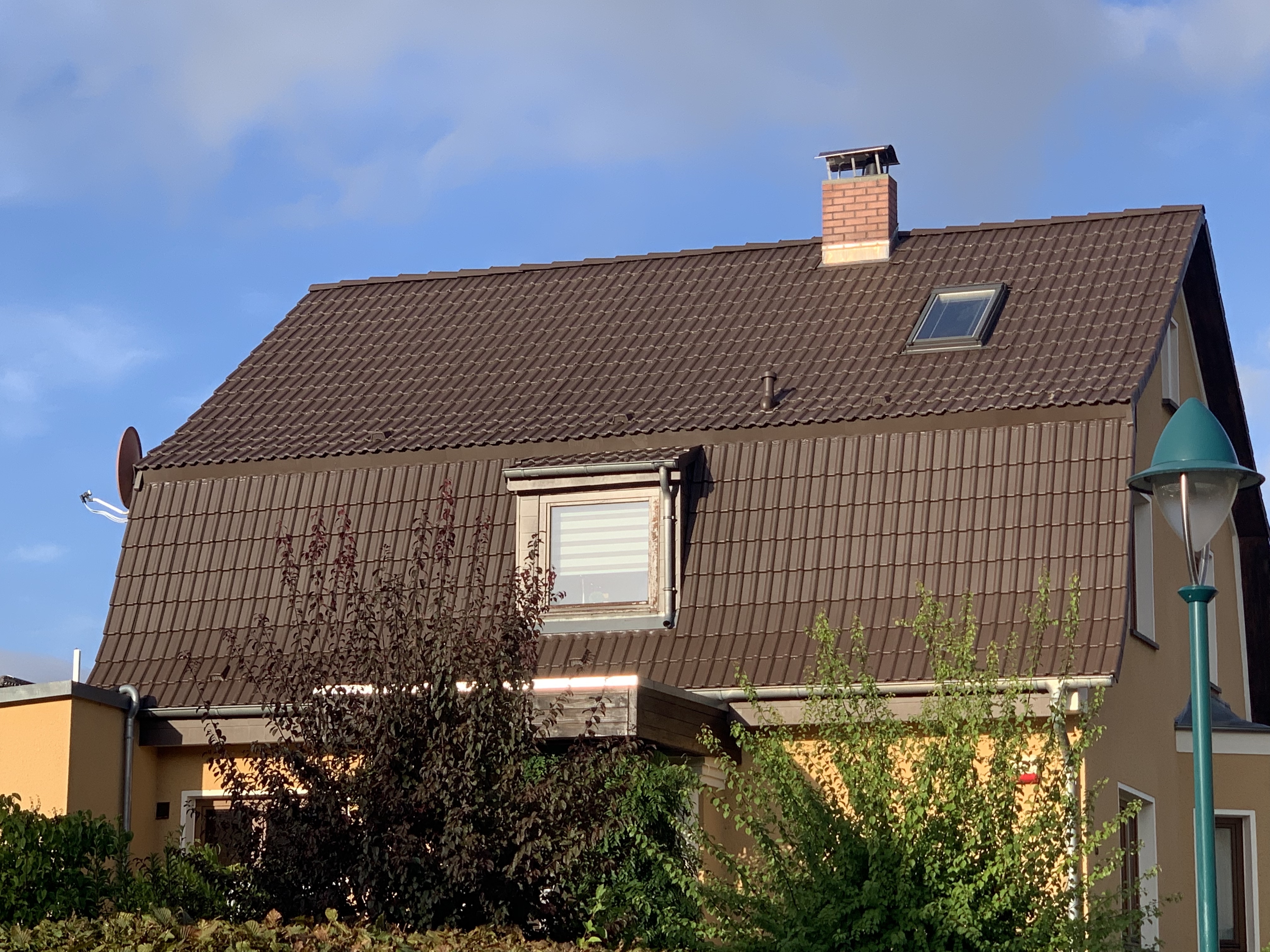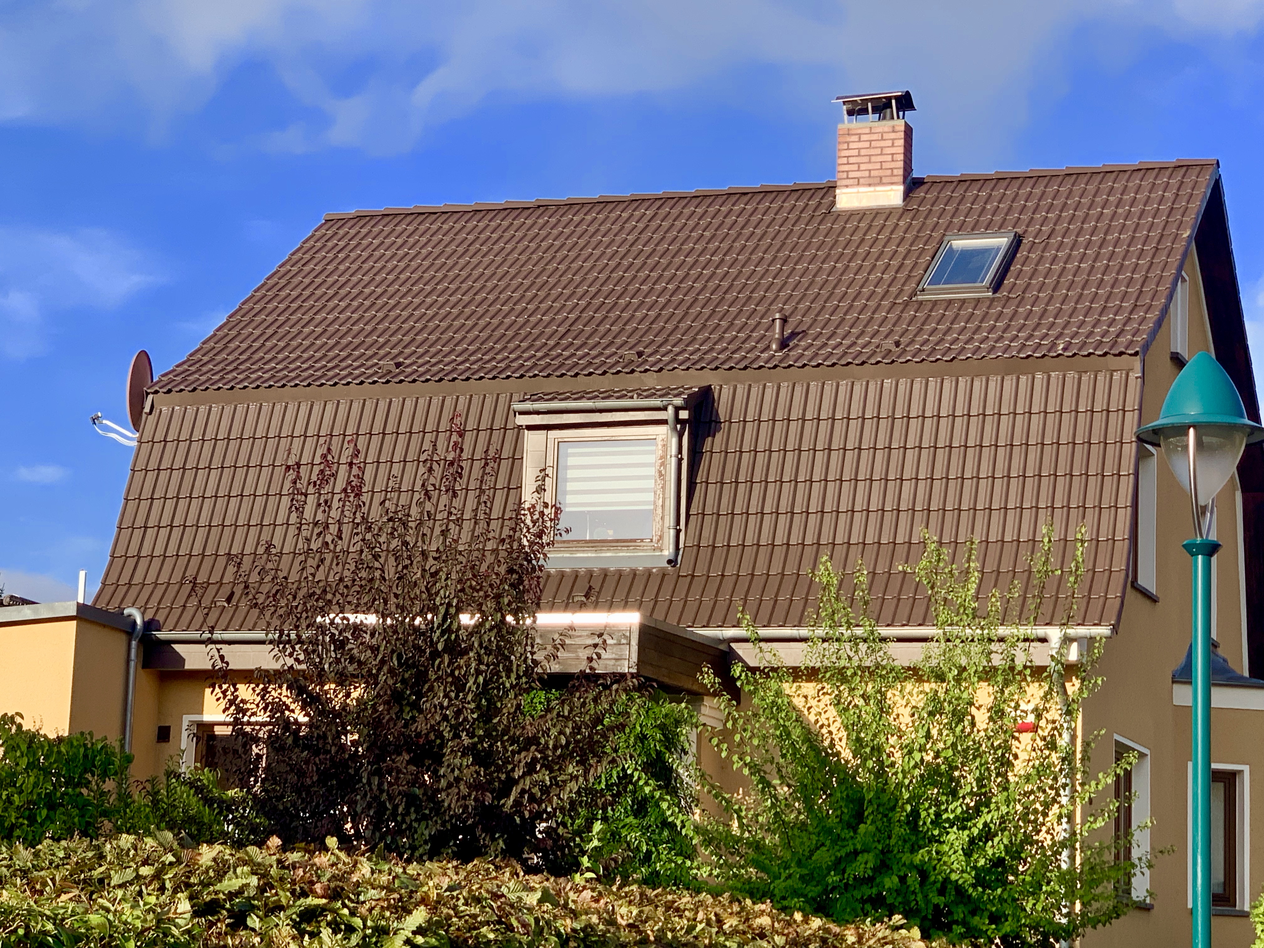 Keine abgeplatzten Stellen, keine Verfärbungen - und inzwischen sogar eine Photovoltaikanlage auf dem stabilen Dach.