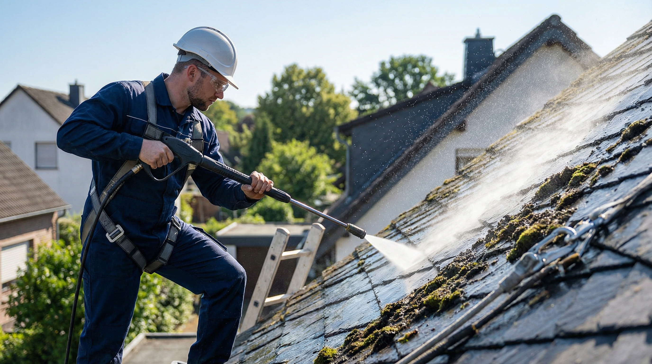 Professionelle Hochdruckreinigung mit materialgerechtem Druck.