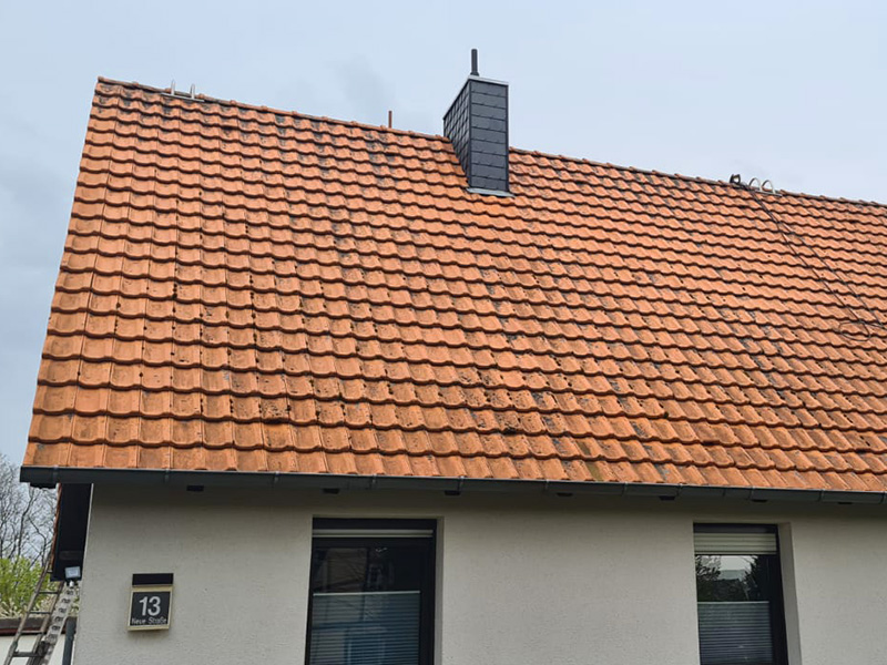 Nach der Reinigung empfehlen wir eine Dachimprägnierung, um die Ziegel vor weiterer Verschmutzung und Feuchtigkeitsaufnahme zu schützen.